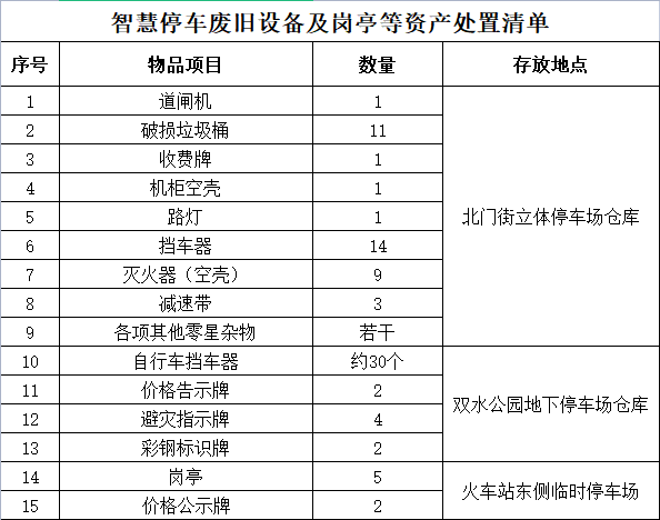 衢州市城市資產(chǎn)經(jīng)營有限公司關(guān)于智慧停車廢舊設(shè)備及崗?fù)ぬ幹庙?xiàng)目詢價(jià)采購公告