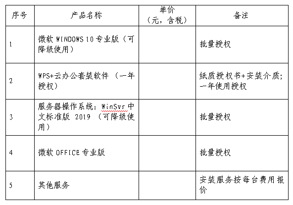 根據(jù)貴公司軟件正版化采購(gòu)項(xiàng)目的需求,報(bào)價(jià)如下: