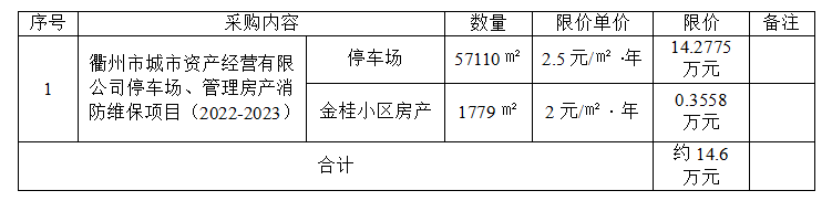 衢州市城市資產(chǎn)經(jīng)營有限公司停車場、管理房產(chǎn)消防維保項(xiàng)目(2022-2023)采購公告