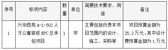 興華西苑4-1-502人才公寓裝修EPC總承包項(xiàng)目競(jìng)爭(zhēng)性磋商公告