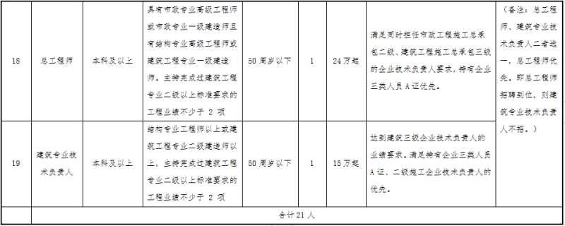 本次面向社會公開招聘衢州市城市建設(shè)投資集團(tuán)有限公司及下屬子公司國有企業(yè)工作人員共21人。具體招聘崗位、崗位(專業(yè))人數(shù)及其他條件要求詳見附表一。