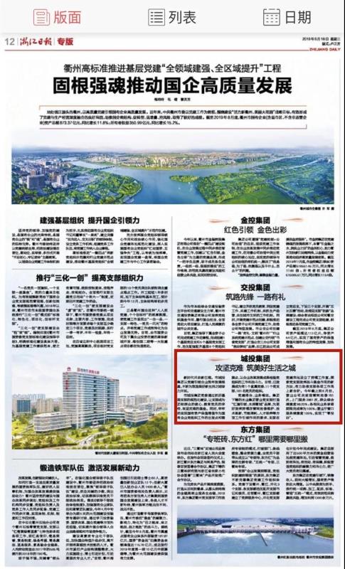 9月18日,浙江日報12版專版刊登了題為《衢州高標(biāo)準(zhǔn)推進基層黨建“全領(lǐng)域建強、全區(qū)域提升”工程 固根強魂推動國企高質(zhì)量發(fā)展》一文,點贊衢州以高質(zhì)量黨建引領(lǐng)國有企業(yè)高質(zhì)量發(fā)展。其中,還報道了城投集團在黨建引領(lǐng)下,企業(yè)建設(shè)不斷走向“高質(zhì)量”。