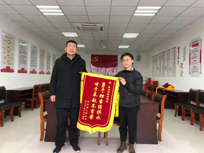 今天下午,雙港街道雙水橋社區(qū)書記、主任史文艷、柯城區(qū)住建局公用事業(yè)中心工作人員毛勝飛一行來到市城投建設(shè)有限公司,代表雙水橋人家小區(qū)全體業(yè)主送上錦旗致謝。