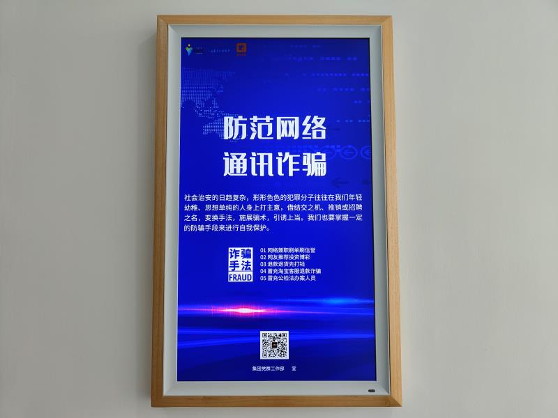 積極利用集團公司電視大屏、BOE畫屏、LED顯示屏滾動播放預防電信網(wǎng)絡詐騙宣傳主題內(nèi)容,并充分發(fā)動全體職工爭當防范電信網(wǎng)絡詐騙的社會宣傳員,在釘釘及微信工作群積極發(fā)布防詐騙安全攻略等進行反詐宣傳,最大程度擴大宣傳的覆蓋范圍,增強影響力。