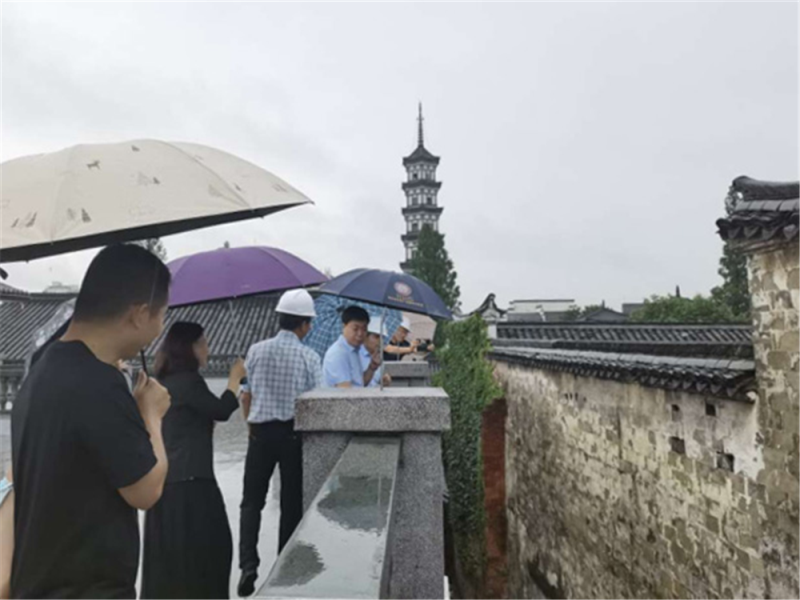 在水亭門歷史文化街區(qū),檢查組對(duì)在建項(xiàng)目、裝修商鋪以及江水上漲后的水亭門外廣場親水平臺(tái)進(jìn)行了逐一檢查。保證項(xiàng)目施工安全,確保裝修臨時(shí)用電雨季安全,加強(qiáng)安保巡邏。