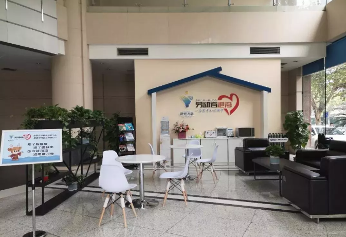 沙發(fā)桌椅、微波爐、充電器、飲水機、雨傘、輪椅、報刊雜志、鮮花綠植等應(yīng)有盡有,處處彰顯著關(guān)愛勞動者的溫暖。